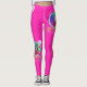 Leggings divertidas para vestir ao cassino, noite de pôquer ou jogo de cartas amigável. Estas leggings têm um ás e um macaco de cartas com chips de pôquer, dados, uma fileira de 7 e uma roda de slot feita em cores neonatais. Este par é mostrado com um fundo rosa, há outra versão com um fundo preto.