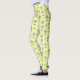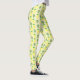 Este incrível par de leggings apresenta um padrão de frutas de abacaxi amarelo tropical com topos verdes e folhas bonito de palma verde-claro. Ideal para um Casamento Termal Tropical ou Verão. Há um círculo amarelo com padrões brancos marmoreados que contém texto personalizável para que você possa personalizar este design.