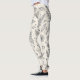 Elegant celestial botanical pattern leggings featuring moons, stars, planets, mystical eyes, and delicate leafy branches in a minimal black and cream style. Ideal for astrology lovers, spiritual seekers, nature enthusiasts, and anyone who loves boho celestial aesthetics.