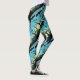 Aqua do cemitério de Halloween e leggings amarelas. Um cemitério com cruzes, túmulos, crânios, morcegos e corujas na floresta e uma bruxa no céu sombrio adoram este legal par de leggings.