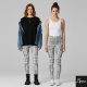 Legging cinzas e xadrezes brancas