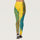 Estas leggings têm uma design de círculos moderna do século médio, com linhas a sair delas em preto e verde num campo de ouro.