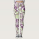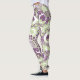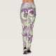 Essas pernas têm um design geométrico de círculos decorados com linhas e círculos feitos de pontos repetidos em beringela e verde.