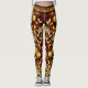 Leggings florais de luxo preto vermelho e dourado, com folhas de acanthus, flores de vintage e correntes de ouro em damasco preto e vermelho.