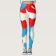 Gráficos cardíacos em vermelho, branco e azul nas pernas femininas.