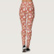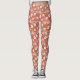 Leggings bonitas com um padrão japonês de flores cor-de-rosa e brancas do cosmos em um fundo vermelho macio.
