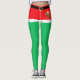 legging vermelha e verde do Papai Noel elfo de Natal decorada com um elfo fofo segurando um trevo de quatro folhas para boa sorte.