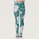 Padrão floral oriental branco em leggings de fundo lacrimogêneo.