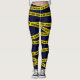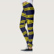 Leggings azuis escuras coloridas, apadrinhadas com fita cola amarela.