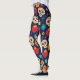 Um estilo calavaras (crânios) colorido e adorável em um fundo preto em um Dia dos Mortos de leggings para sua celebração de feriado.