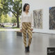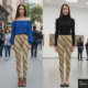 Legging Diagonal Stripe Brown Gold Metallic Glossy
