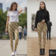 Legging Diagonal Stripe Gold Silver Metallic Glossy