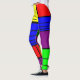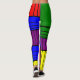 Estas leggings têm uma design de Bauhaus de retângulos divididos em pedaços cada vez menores em vermelho, amarelo, azul, verde, roxo num campo de preto.