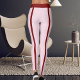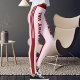 These leggings have a soft light pink base with bold, deep red Valentine accents. On both front thighs, large deep red text reads “HAPPY VAL PET MILO,” highlighting a pet-lover, cat-mom Valentine theme. Deep red side stripes run down both legs for a sporty, modern look. A single slim deep red stripe appears on the back of each leg, and a bold deep red waist stripe adds structure and contrast. The name and message are fully customizable, making the design personal and gift-ready.