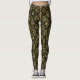 Legging Dourado padrão dos damascos de safra em preto