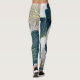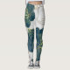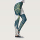 Legging Elegant Leaves of Blue With Gold Lines Botanical