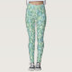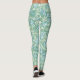 Estas leggings têm um design de Boho de espirais sobrepostas em azul e verde num campo de branco.