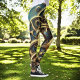Dourado relógio brilha contra um fundo teal neste elegante design de boia-palha trazendo um sentido industrial vívido à arte moderna.