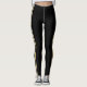 Leggings personalizadas em preto sólido com uma faixa dupla atlética em brilho dourado com texto personalizado no meio que pode ser diferente de cada lado. Perfeito para mostrar sua citação favorita, seu mantra versátil, inspirador, nome do grupo ou adicionar seu nome ao repetir para baixo de cada perna! A cor e as fontes da legenda podem ser alteradas clicando em 'personalizar mais.'