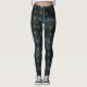 Feliz e Brilhante Pernas de Padrão Azul-Teal Festivo, perfeitas para sua roupa de Natal. Você pode atualizar o texto ou removê-lo. Os padrões são estrelas ouros marrons bonitinhas em várias formas colocadas sobre fundo azul-lacrimogêneo.