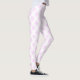 Estas leggings apresentam um padrão de flocos de neve cor-de-rosa sobre um fundo branco e macio.