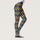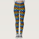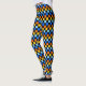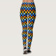 A vibrant checkerboard pattern featuring alternating rows of orange, yellow, light blue, and blue squares against a black background. The design is bold and energetic.
