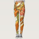Legging Flores Brancas Elegantes Laranja E Grelha