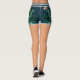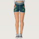 Calções tropicais com folhas verdes e flores rosa. Ilusão de pernas nuas. Antecedentes de Aquamarine. Cinturão branco e algemas feitas com listras. Clique em Personalizar para alterar o tom de "pele".