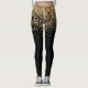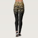 Um design de leggings em chic com elegante brilho de ouro em fundo preto.