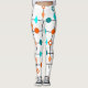 Estas leggings têm um design moderno do século médio de uma grade em linhas pretas com círculos laranja e lacrimogêneo e diamantes.