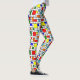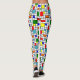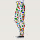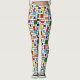 Estas leggings têm um design Bauhaus de uma grade com quadrados e retângulos em vermelho, verde, azul, laranja, azul claro, amarelo e vermelho.