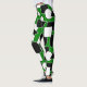 Estas leggings têm um design Bauhaus de triângulos, círculos, retângulos e pentágonos em preto e branco num campo de verde.