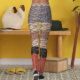Legging Grey Brown Black Beige Textile Knit Stripe Pattern