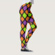 Padrão de Quatrefoil do Halloween Laranja Púrpura Preto Verde Leggings Modernas apresenta um padrão de quatrefoil colorido. Perfeito para o outono com as celebrações de Dia das Bruxas e Ação de Graças. Elaborado por ©Evco Holidays www.zazzle.com/store/evcoholidays