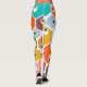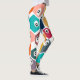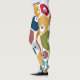 Estas leggings têm um design moderno século médio de hexágonos em muitas cores, com círculos pretos e brancos a dentro.