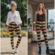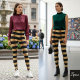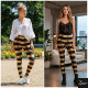 Legging Horizontal Stripe Black Gold Metallic Glossy