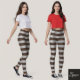 Legging Horizontal Stripe Brown Silver Metallic Glossy