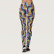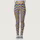 Leggings de ilusão espirais azuis, amarelas e laranja.