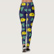 Legging Impressão de folha floral amarela no marinho