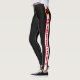 Leggings pretas com faixa vermelha e branca larga na perna esquerda com o logotipo "KANSAS CITY, MISSOURI GO AHEAD-you CAN DO IT" e Y-NOT-ME. Este design é um grito para Kansas City, Missouri.
