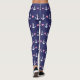 Legendas de âncora azuis marinho decoradas com ilustrações de cor rosa e âncora branca. Leggings náuticas femininas com corações e âncoras vivos. Base de excelentes para o seu equipamento de pernas de âncora.