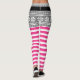Leggings cegas (cinza e cor-de-rosa) de elfo de Natal bonito. Feriado engraçado para mulheres e adolescentes. Miras personalizadas com cores personalizadas. Uma fantasia bonita para o Papai noel. Faça suas próprias calças impressas personalizadas para a temporada de Férias. Calções divertidas com pernas listradas, cinta preta e flocos de neve nórdicos.