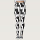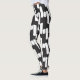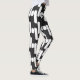 Leggings preto e branco divertidas e modernas, com faixas simétricas abstrato brancas sobre fundo preto.