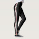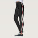 Legging colorido sólido preto clássico e na moda com faixas laterais brancas e vermelhas.