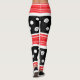 Impressão vermelho, preto e branco moderno com listras, flores e pontos de polca. Calça de yoga na moda, juramento desportivo com estilo.