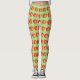 As leggings apresentam uma ilustração original de uma maçã vermelha brilhante, impressa sobre fundo verde.