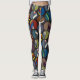 Estas leggings têm uma design moderna do século médio de metades ovais, algumas sólidas e algumas listradas, em cores masculinas num campo de cinzas escuras.