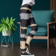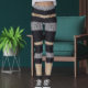 Legging Modern Black Grey Beige Knit Stripe Pattern Yoga