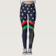 Celebre os dias 4 de julho e 19 de dezembro de Independência dos EUA com estas leggings de na moda. Design apresenta fundo azul escuro com estrelas brancas e faixas vermelhas, pretas e verdes em torno das coxas do joelho. Cada um dos lados da perna como o nome 4 de julho e o outro lado 16 de junho, em cada cor de feriado. Design por Ms_Jade. © Ms_Jade
