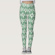 Legging Natal do Padrão de Poinsettia Verde e Branca